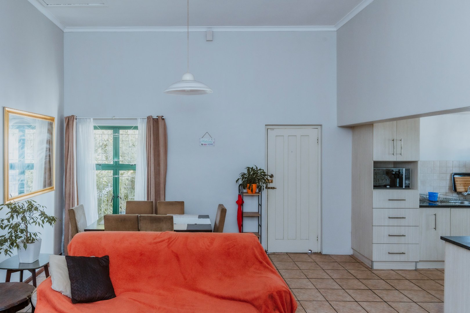 As you come in by the front door you will walk into a spacious open plan with high ceilings.